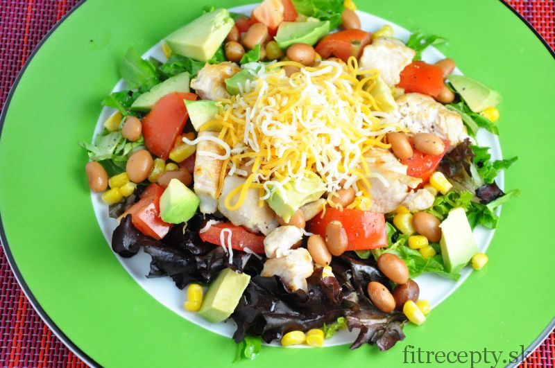 V mise si zmiešame umytý a nakrájaný šalát s fazuľou, kukuricou, nakrájanou paradajkou a avokádom. V malej miske si zmiešame olivový olej s citrónovou šťavou, štipkou čierneho korenia a soľou. Vzniknutý dressing primiešame ku zelenine a poriadne premiešame. Pridáme ugrilované mäso a znova premiešame. Šalát na záver posypeme strúhaným čedarom a podávame.
